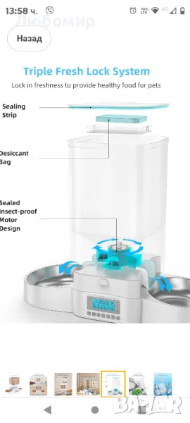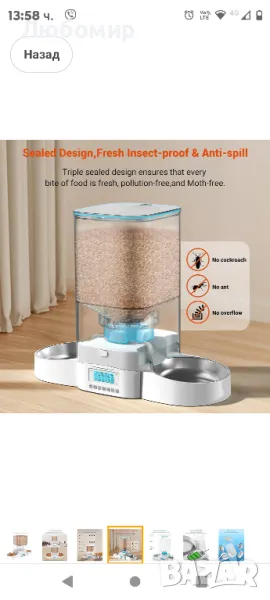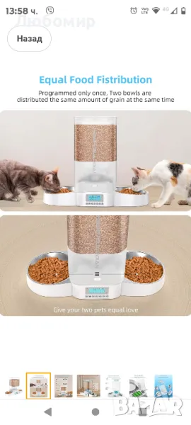 HoneyGuaridan 5L автоматична хранилка за две котки, дозатор за котешка храна с купа от неръждаема стомана, програмируема хранилка за котки с 1-6 часа контрол.Уникално двустранно хранене: Автоматичната хранилка HoneyGuaridan Dual Cat постига равномерно разпределение на храната за домашни любимци от двете страни, като ефективно избягва неравномерното хранене. Дизайнът на ляво и дясно хранене осигурява тиха среда за хранене на вашите домашни любимци. Вече не е нужно да се тревожите, че вашите домашни любимци се състезават за храна.Гуменото уплътнение между капака и купата за автоматично захранване ефективно изолира въздуха, за да предотврати окисляването на храната и предотвратява излизането на миризмата от храната на вашия домашен любимец. В капака има и торбичка за изсушаване за изсушаване и предотвратяване на влага. Уникалният запечатан дизайн на люлеещата се врата на хранилката автоматично затваря порта за хранене след приключване на всяко хранене, предотвратявайки влизането на мравки и насекоми.