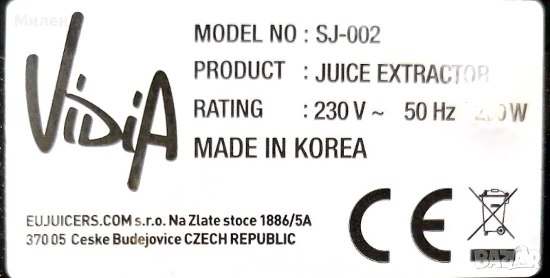 Пресоваща сокоизстисквачка - Vidia SJ-002