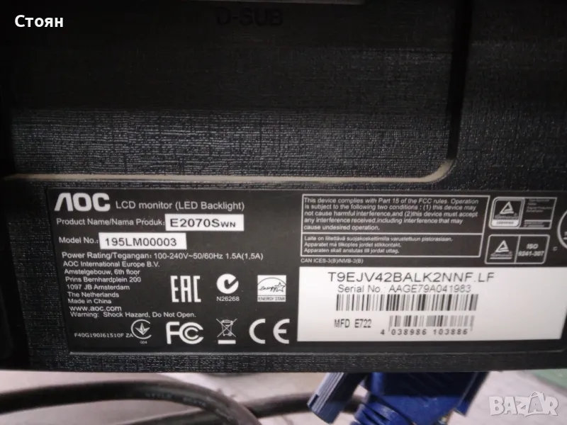 Монитор AOC 19.5" E2070SWN, снимка 1 - Монитори - 49115193 Монитор AOC 19.5" E2070SWN, снимка 2 - Монитори - 49115193 1/2