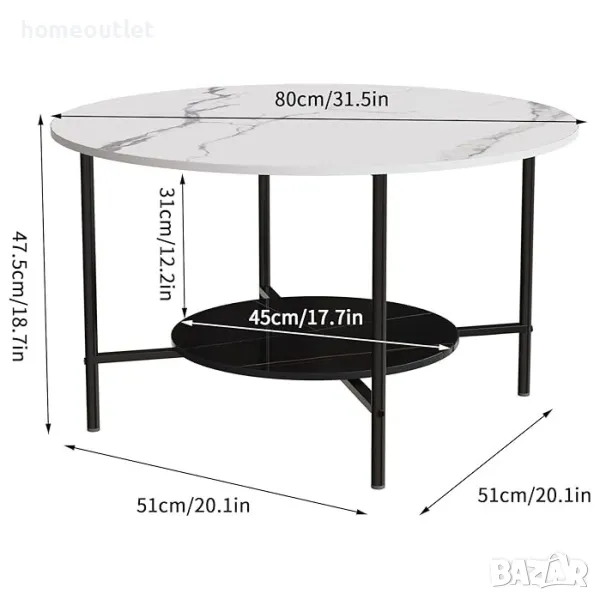 Белият плот с мраморен ефект контрастира с черната стоманена рамка, за стилен завършек и акцент във всяко пространство.