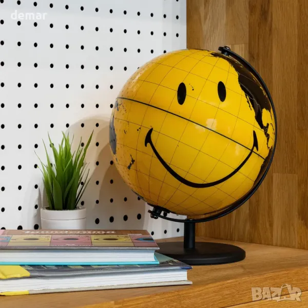 Забавен и странен глобус, предназначен да озари всяко пространство, независимо дали като декоративен аксесоар за дома или офиса. С весел усмихнат дизайн, той добавя закачлив привкус към традиционните карти на света, което го прави чудесен избор за бюра, рафтове или всекидневни. Гъвкав и привличащ вниманието, той работи както като уникален офис аксесоар, така и като забавна алтернатива на стандартния глобус, внасяйки щастие във всяка обстановка. Идеален за мъжки и дамски бюра, домашни офиси или детски стаи, той служи като стилен и функционален декор. Идеална идея за подарък, особено за Коледа, добавяща нотка радост към всяко пространство.