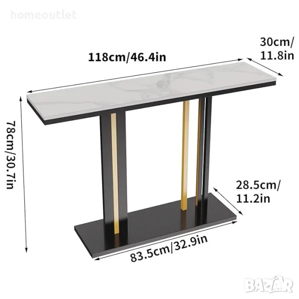 С метални крака в златисто и черно покритие, тази конзолна маса е проектирана с отворена геометрична рамка, която е изключително модерна и атрактивна.