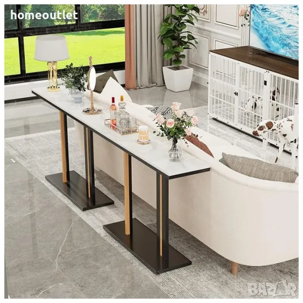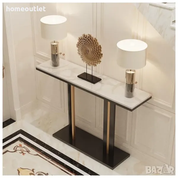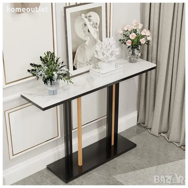Нашата конзолна маса с плот от синтерован камък е най-добрият избор, съчетаващ елегантността на мрамора и здравина, която далеч надхвърля всеки естествен камък.