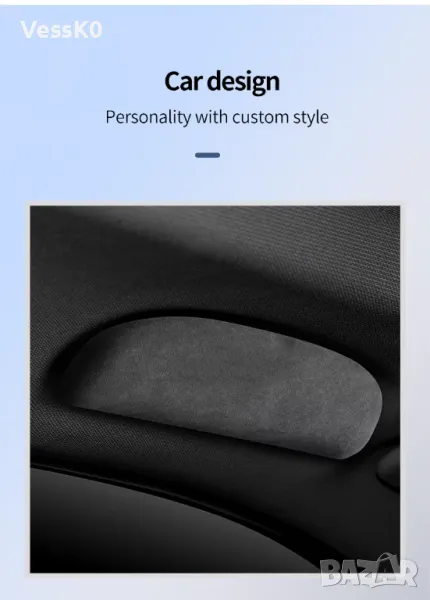Държач за очила облицован в алкантара (микрофибър), монтира се на мястото на дръжката над вратата и предоставя удобен достъп до очилата по време на движение.