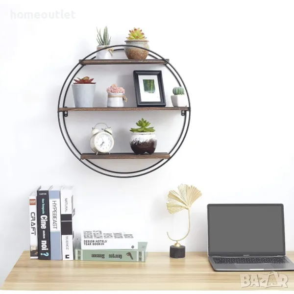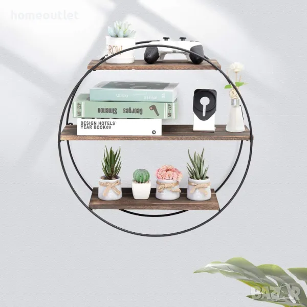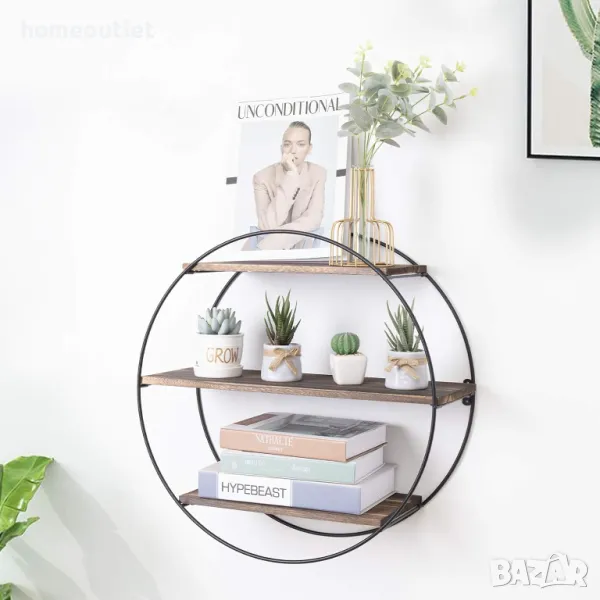 Кръглият рафт за стена разполага с 3 нива, които са елегантен и стилен начин за излагане на декорации, снимки, книги и дребни вещи или за съхранение на различни неща.