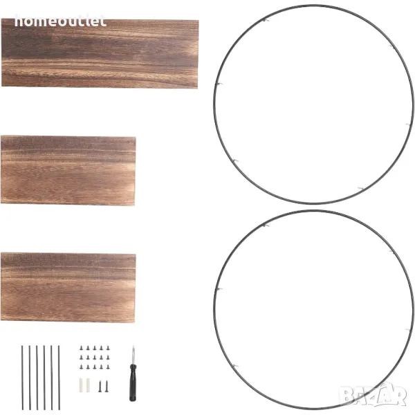 Кръглият рафт е изработен от естествена борова дървесина и прахово боядисана метална рамка за приятен артистичен вид, който е достатъчно надежден и здрав, за да побере някои малко по-тежки предмети.