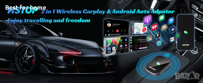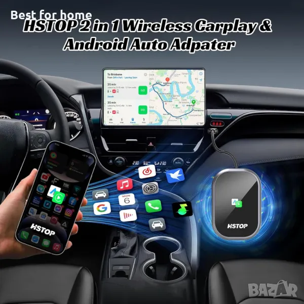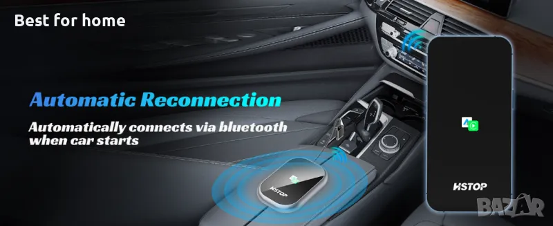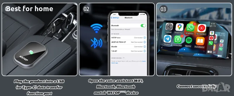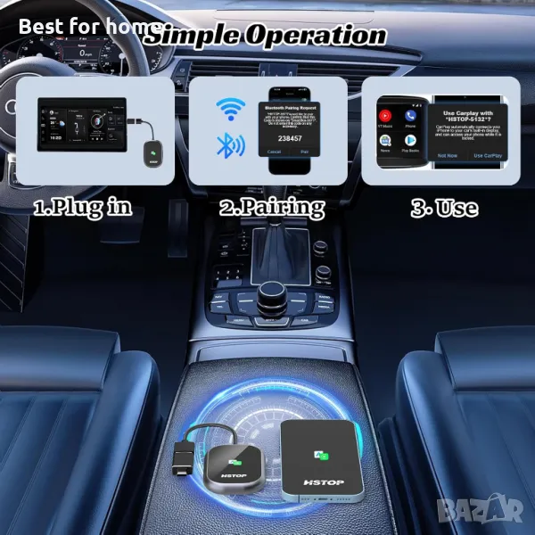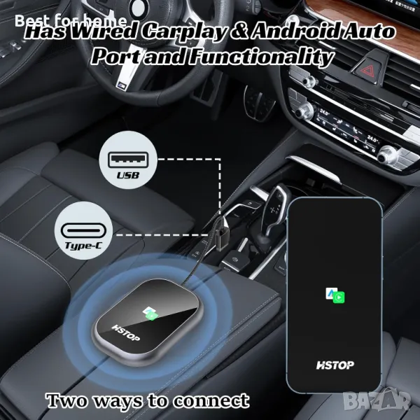 Бърза и стабилна връзка - HSTOP 2-в-1 адаптер за безжична връзка за кола се свързва само в 3 прости стъпки: включете безжичния адаптер carplay/android auto в USB порта на кабелната връзка, включете Bluetooth и WiFi на телефона си и се свържете. Веднъж сдвоен, той автоматично ще се свърже с телефона ви следващия път, когато шофирате колата си, така че не е необходимо да го сдвоявате отново