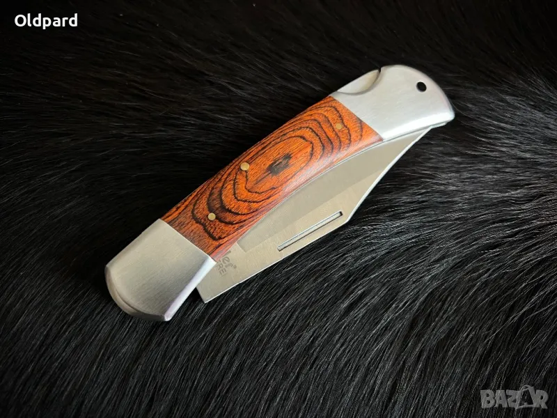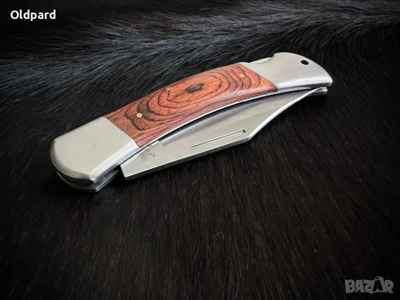 Силен голям сгъваем ловен нож Linder. Надеждно заключване на острието. 420HC острие от неръждаема стомана. Дължина на острието 10,0 см. Дължина в сгънато състояние - 12,8 см. Дръжка е pakkawood.