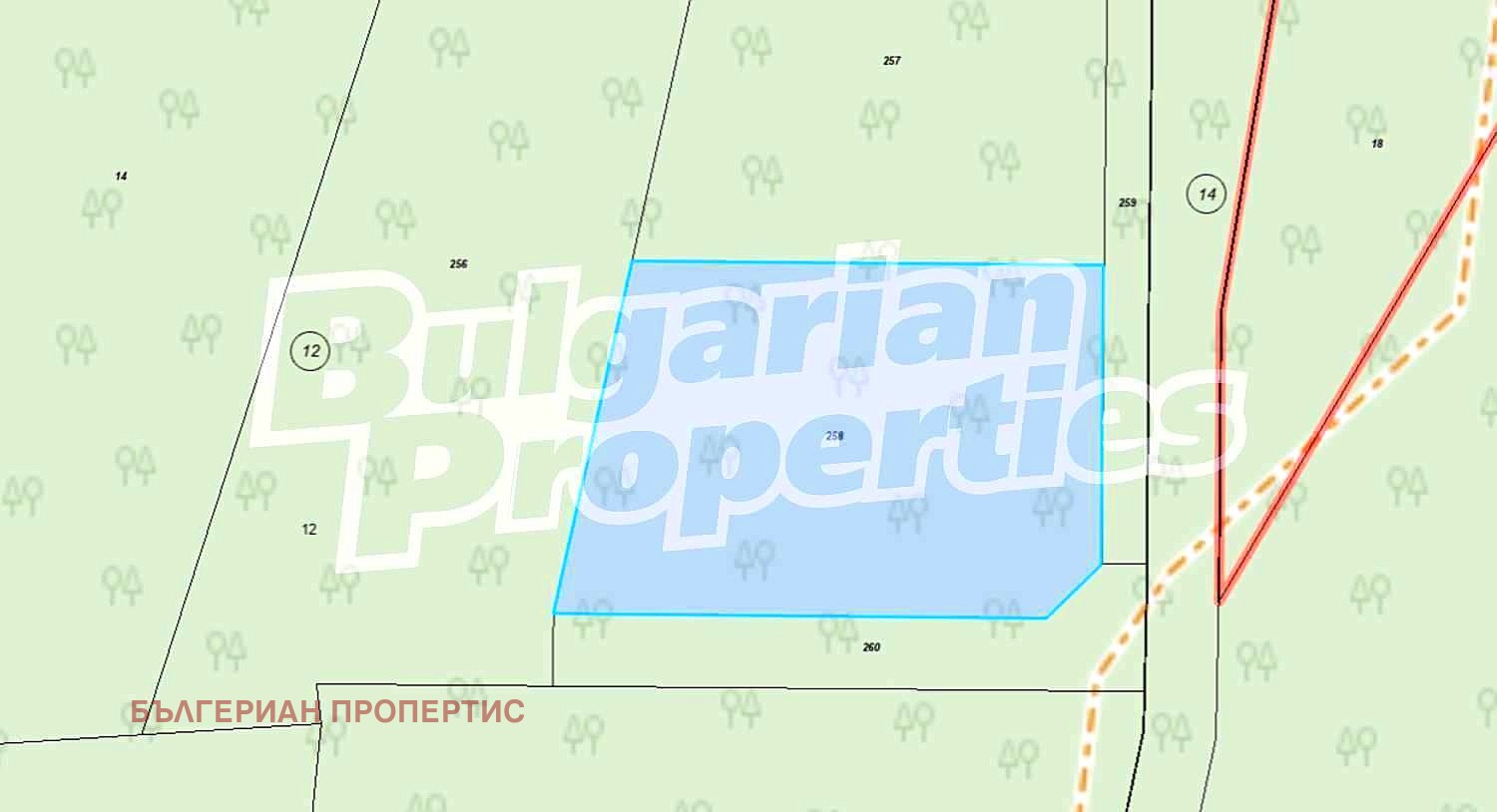 Парцелът е обгърнат от борови дървета и храсти, което добавя допълнителен чар и усещане за уединение и природна красота.