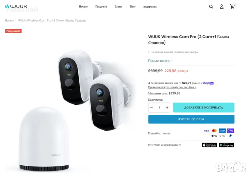 Комплект чисто нови WUUK Wireless solar Cam Pro 2kit + Звънец + Базова станция.