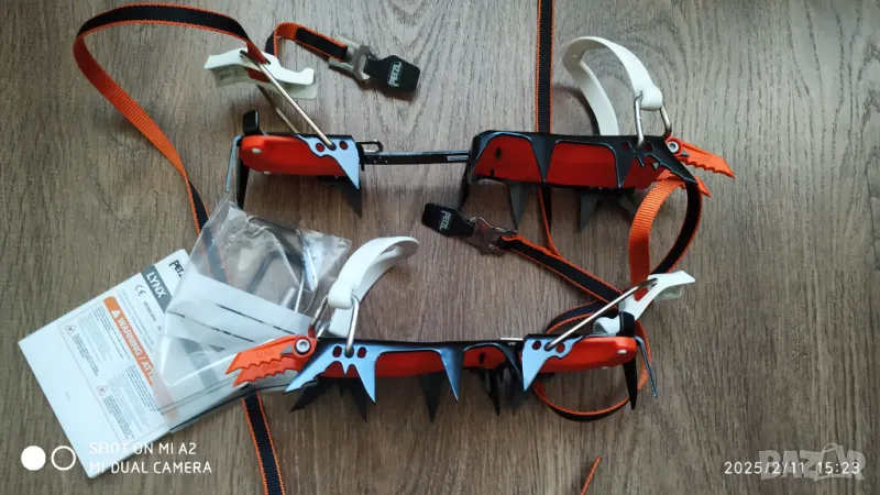 - Дължината на предната точка, регулируема с един винт (патент на Petzl)