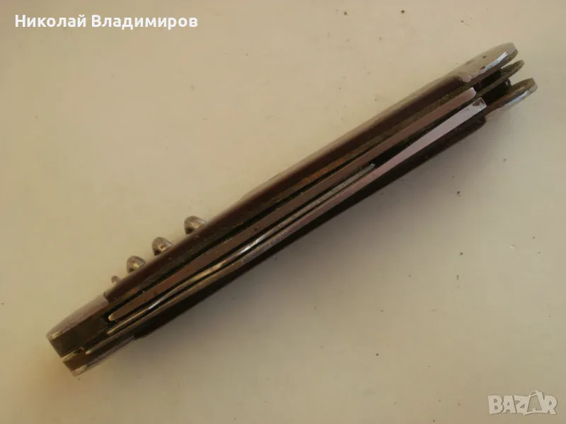 Ножа е отлично запазен и със здрави пружини и няма луфт на остриетата.Ножа е тъмно кафяв.Ако имате въпроси моля питайте.