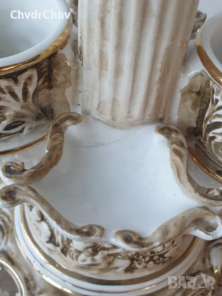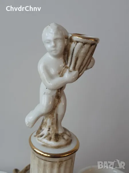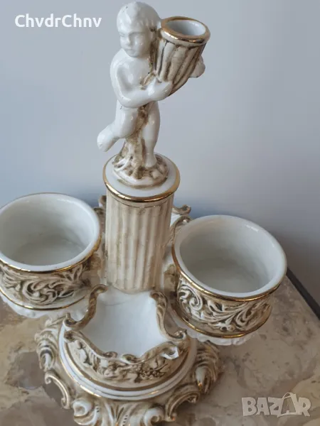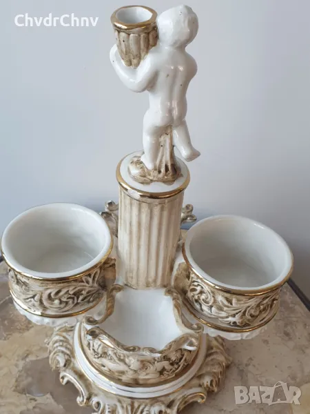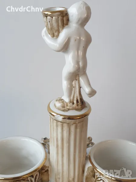 Capodimonte 29см/Каподимонте голям стар италиански порцеланов свещник-бонбониера/дете-злато