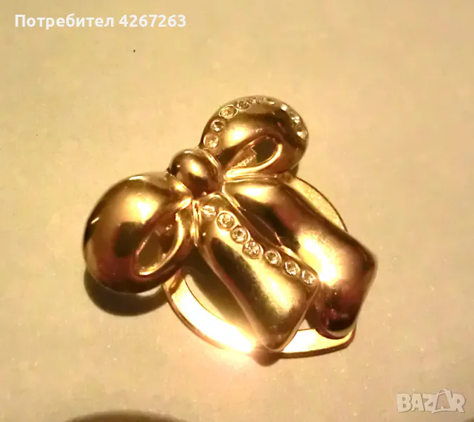 Щипка за шал, халка за шалче, във форма на панделка с кристалчета, винтидж → Обява 49118354