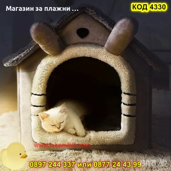 Подарете на вашия домашен любимец комфорт и топлина с мекото легло, зимната къщичка за кучета и котки, проектирана специално за студените месеци. Тази уютна къщичка е перфектно решение за малки кученца и котки, които търсят сигурно и топло място за почивка и сън.