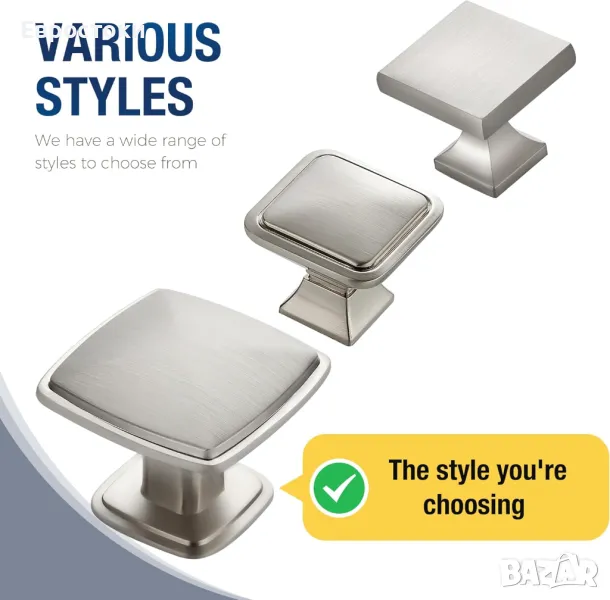 Външният вид на нашите квадратни копчета за шкафове е по-модерен, придавайки усещане за мода и модерност.