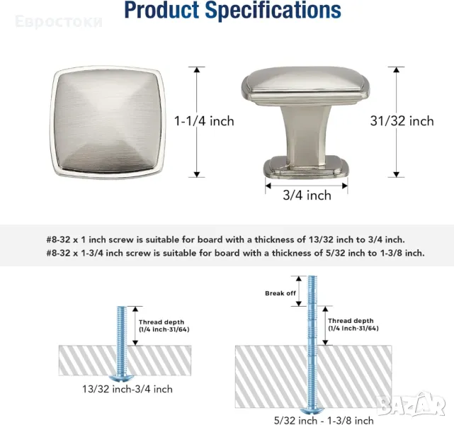 Квадратна дръжка за шкаф от полиран никел за кухненски шкафове и чекм