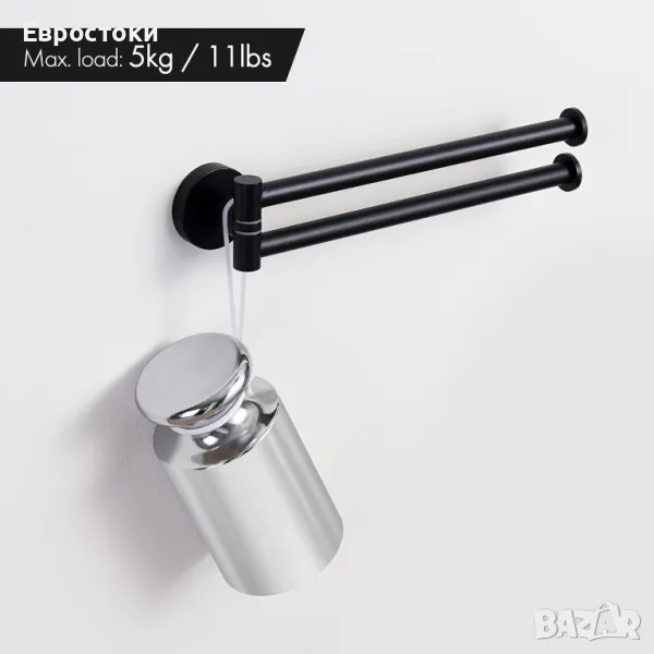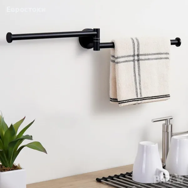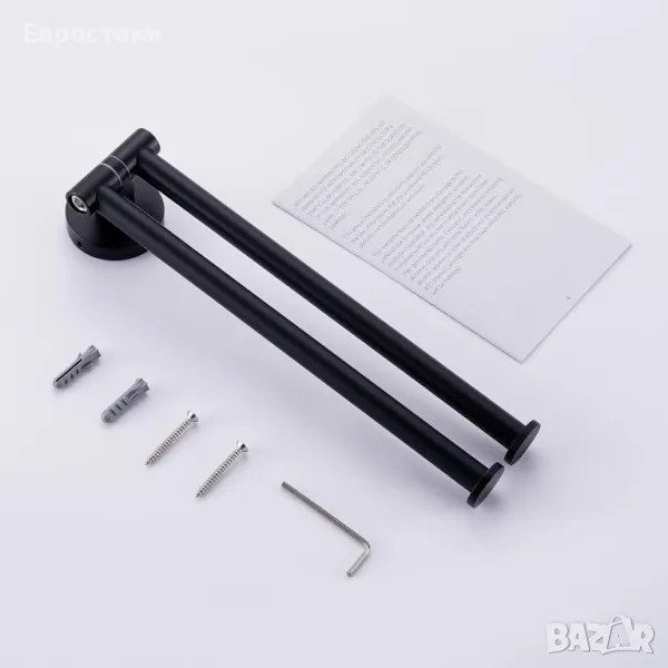 Въртящият се държач за кърпи KES има 2 въртящи се рамена, които могат да се завъртят на 180°, за да окачите удобно две кърпи едновременно, без да се докосвате. В допълнение, въртящата се държача за кърпи се завърта плавно за лесен достъп до вашите кърпи.