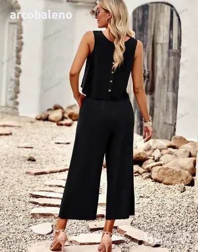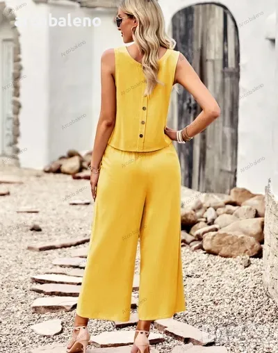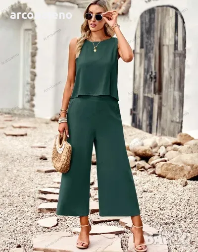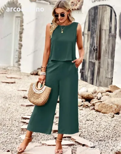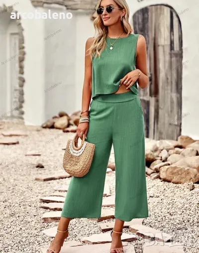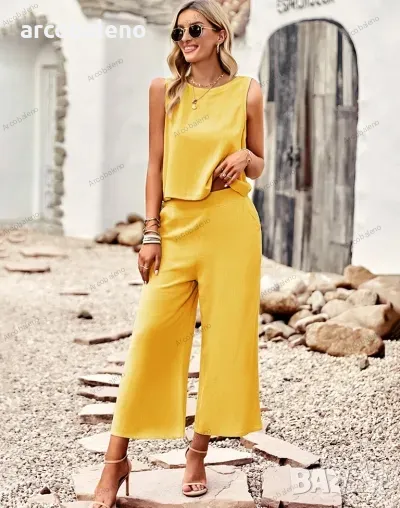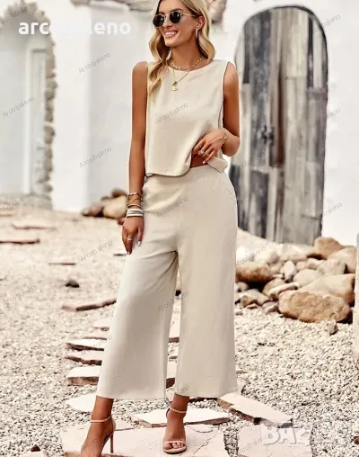 Комплект от елегантно горнище без ръкави и дамски панталон от две части