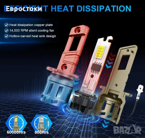 Авиокосмически алуминий. Висококачествен аерокосмически алуминий и изваян дизайн с медна основа за максимално разпределение на топлината. Високоскоростният вентилатор може също така непрекъснато да циркулира въздух, за да помогне за разсейването на топлината от LED чипсетите, поддържа LED H3 в добро работно състояние за удължаване на живота на крушката до над 60 000 часа.