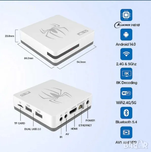 Процесор: Allwinner H618 за мощна производителност и ефективна многозадачност;