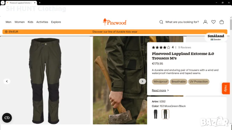 Марка: PINEWOOD Lappland Extreme Waterproof Trousers - панталон със здрава материя водонепромокаем. Подходящ за гоначи. L224-13 Размер: 46 / S - ширина в талията 41 см , дължина 105 см.