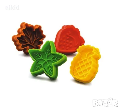 4 бр Ананас ягода листо звезда пластмасови резци форми форма резец с бутало за тесто фондан сладки → Обява 49120510