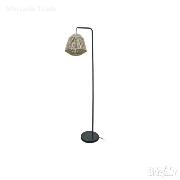 Декоративна настолна лампа Mercado Trade с метална рамка, кабел 2м и висяща плетена шапка в естествен цвят.