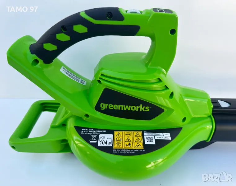 духалка за листа с безчетков мотор на Greenworks с потенциометър за регулиране на мощността. Машината е неразличима от нова, както се вижда на снимките използвана е само веднъж за 5-10 минути, внос от Франция. Обявената цена е без батерии и зарядно, при желание на клиента може да се добави батерия 40V 6.0Ah с индикатор и цената тогава ще е 220лв.