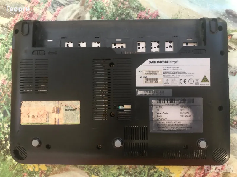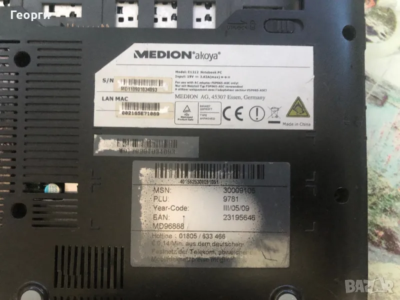 Продавам, лаптоп MEDION akoya E1212 на части,проблема му е счупен екран(дисплей),лаптопа е работещ може да се тества или да се използва с външен монитор,продадена е единствено батерията от него,всичко друго за момента е налично и работещо без проблеми,работещ в момента с Windows 7.