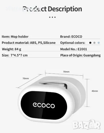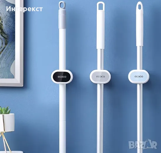 Без пробиване!!! Самозалепващ държач на мопове , метли с дълги дръжки или парцали за чистене.