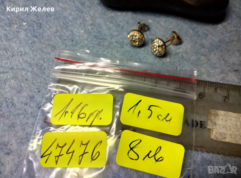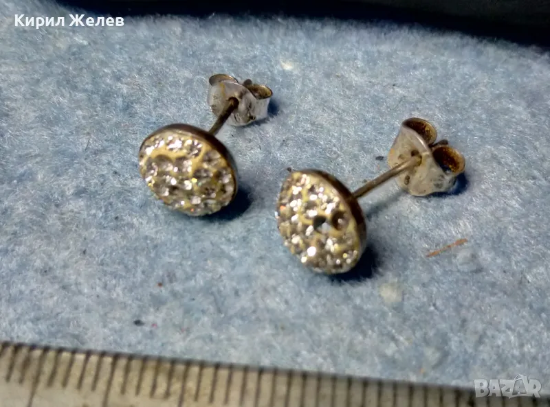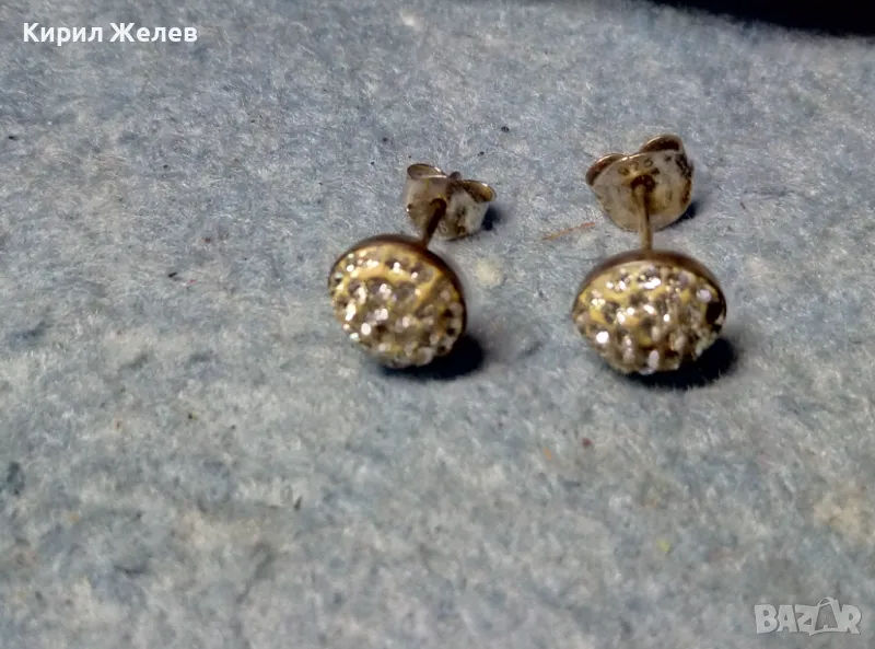 НЕЖНИ КЛАСИЧЕСКИ МОДЕЛ СРЕБЪРНИ ОБЕЧКИ СРЕБРО 925 ОБЕЦИ с ИСКРЯЩИ ЦИРКОНИ В/у БЯЛ ЕМАЙЛ 47476