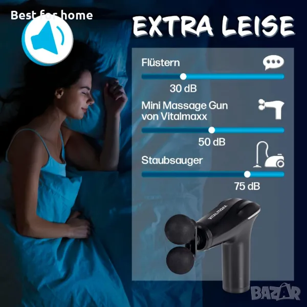 Масажен пистолет VITALmaxx с 6 нива на мощност - изключително мощен | Масажор с 4 приставки за мускулен масаж и отпускане на напрежението, включва приставка с двойна топка