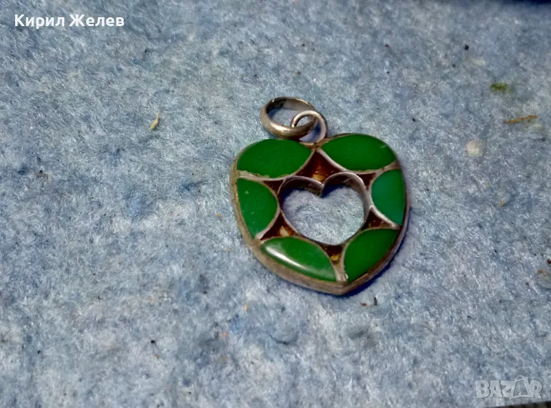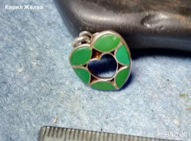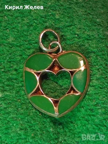 СЪРЦЕВИДЕН СКЪПОЦЕНЕН СРЕБЪРЕН ПЕНДАНТ СРЕБРО ВИСОКА ПРОБА с ЮВЕЛИРНО ШЛИФОВАН ЗЕЛЕН ЯСПИС 48965