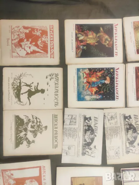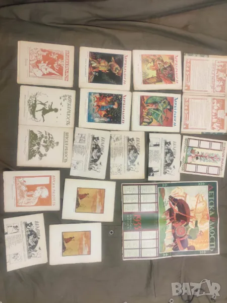 Според мен пълен комплект : 8 книжки Детска радост , от по 16 стр., 4 броя вестник Врабче ,голям формат от по 2 листа всяко, училищна програма , и цветна картинка " Овчарче " - два броя , вместо един; папка и голям календар за 33-та