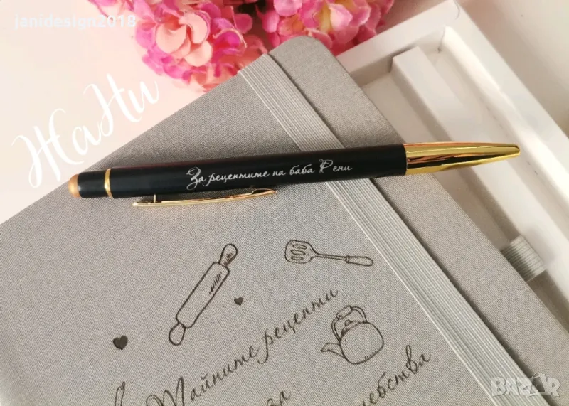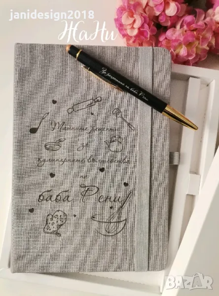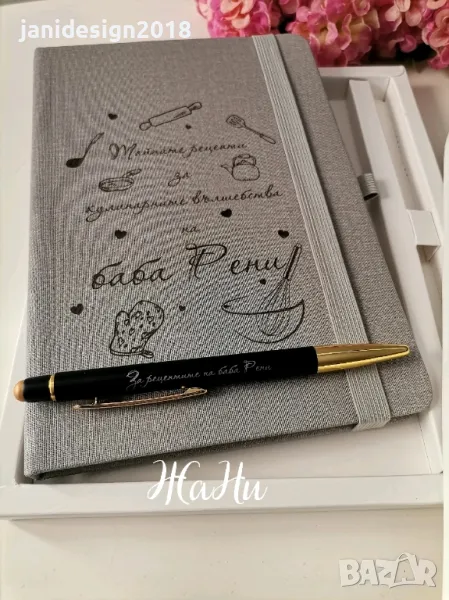 подаръчен комплект гравиран тефтер с химикал в кутия за тайните рецепти на баба → Обява 49123377