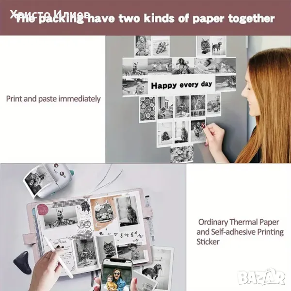 Може да се използва като играчка за деца, за да отпечатат любимите си снимки и шаблони, албуми или всякакви DIY карти и др.