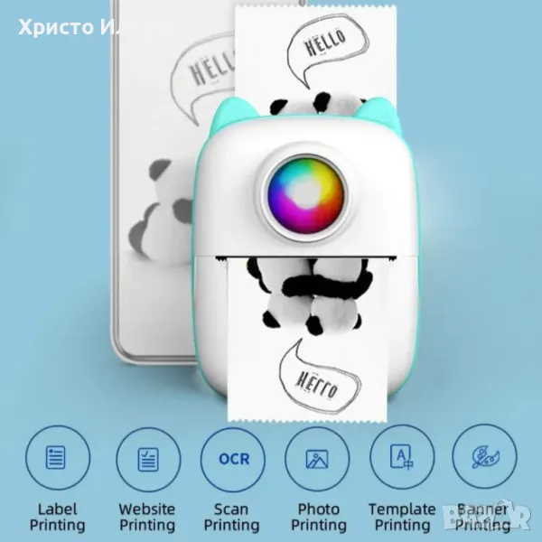 Мини принтер за отпечатване на снимки, рисунки и етикети. Сладко коте отпечатва всичко, което проектирате в специалното приложение. - Печат по термична технология - не е необходимо мастило.