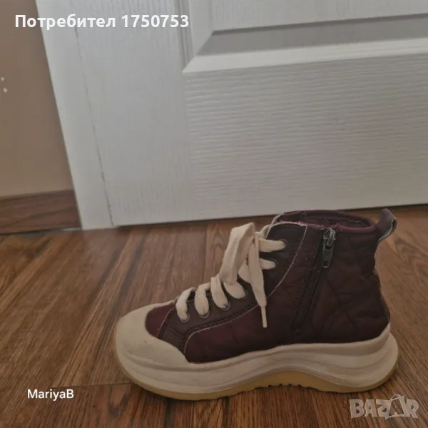 Чудесен , елегантен модел детски кецове на ЗАРА. Номер 30. Цвят: бордо. Дължина на стелката отвътре:17 см. Отлично състояние и качество. Кецовете имат допълнително ципове от вътрешната страна, за по-удобно и бързо обуване.