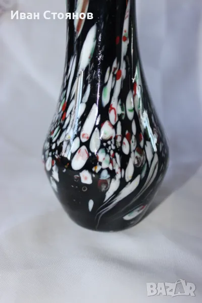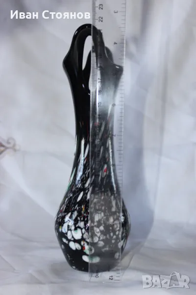 Стъклена ваза, изработена ръчно чрез процес за обработка "издухване на стъкло". Височина - около 21 см.