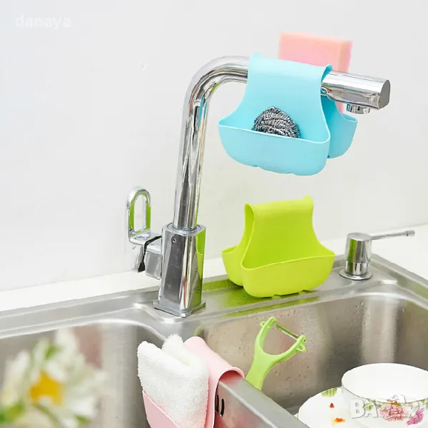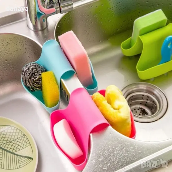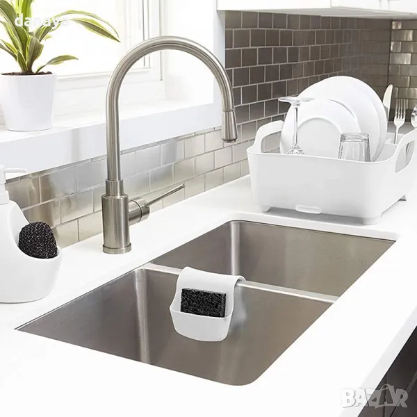 Поддържайте мивката си организирана с тази практична силиконова двойна поставка за кухненска гъба! Този удобен държач побира две гъби или други кухненски аксесоари, като телчета и четки за съдове. Изработен от силикон, той е гъвкав, издръжлив и лесен за почистване.