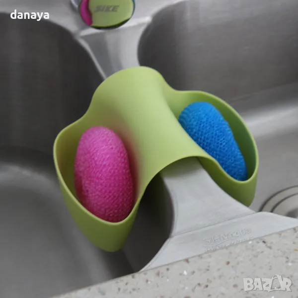 Силиконова двойна поставка за кухненска гъба. Силиконов държач за две кухненски гъби или други кухненски аксесоари. Изработен от силикон и лесен за почистване.