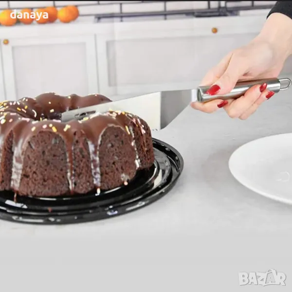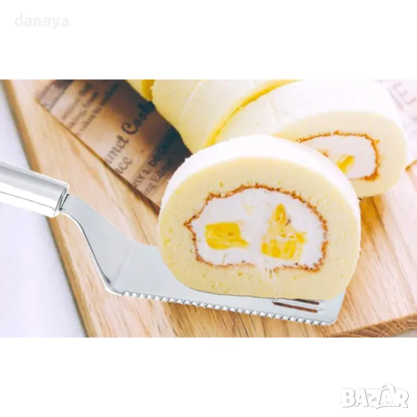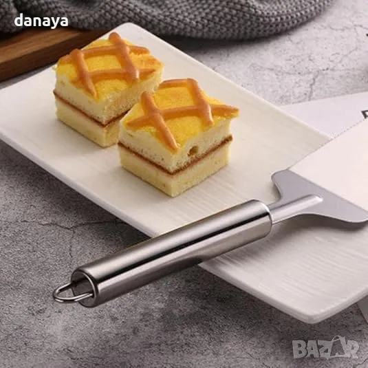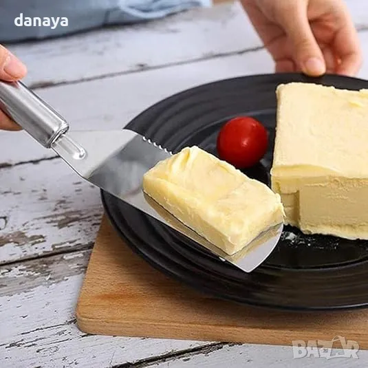 Метална лопатка за торта с назъбен ръб за прецизно рязане и сервиране.