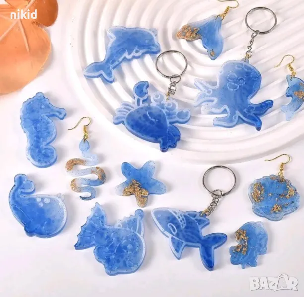 12 морски животни риба рак делфин контур силиконов молд форма фондан смола висулка колие бижу шокола → Обява 49126770