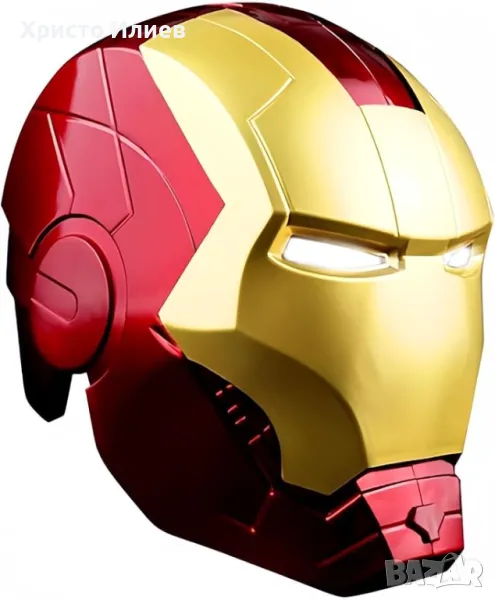 Маска Електронен шлем Marvel Legends Iron Man светещи очи Железния човек златно с червено