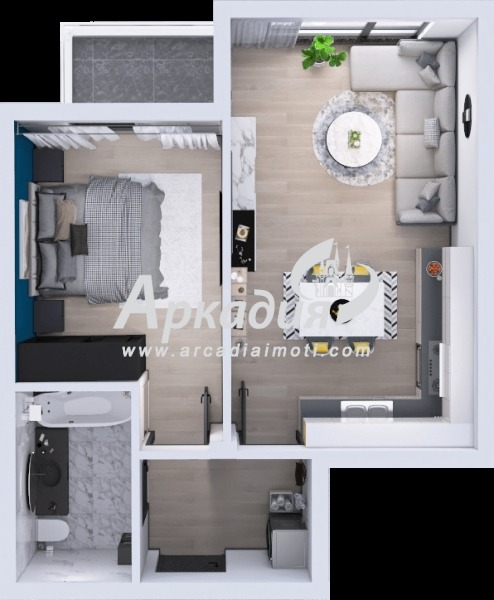 Жилището, което Ви предлагаме се състои от дневна с кухненски бокс, спалня, баня с тоалетна, входно антре,веранда. Предлага се завършено на шпакловка, замазка, цялостно окабеляване за интернет и телевизия, висок клас входна блиндирана врата.