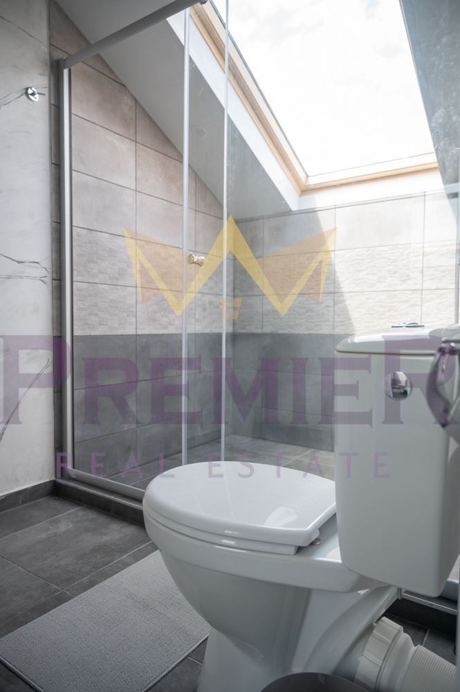 Санитарен възел: Модерният санитарен възел е функционално организиран и включва всички необходими удобства, като душ, мивка и тоалетна.