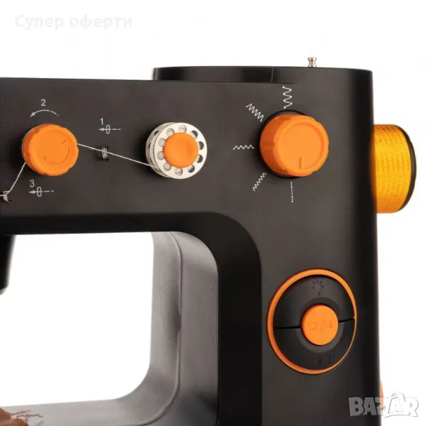 Допълнителни функции: Автоматично връщане на нишката, вградена лампа, ножче за конци;