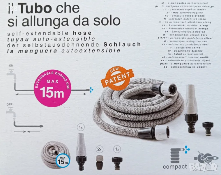 Комплект разтегателен маркуч от 5 до 15 метра с конектори и струйник. Нов. → Обява 49127496