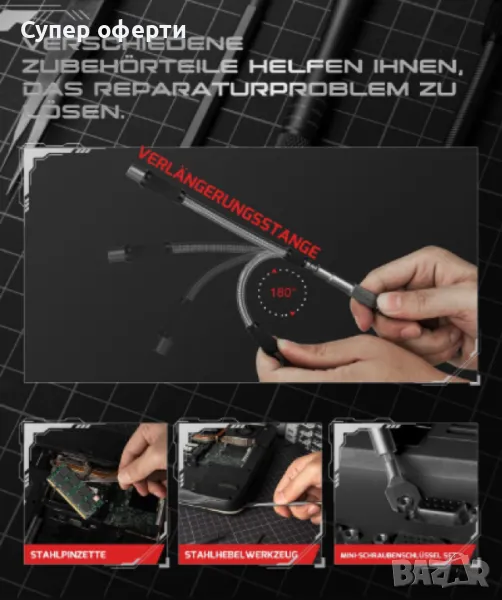 Универсалност: перфектен за ремонт на iPhone, лаптопи, компютри и камери.